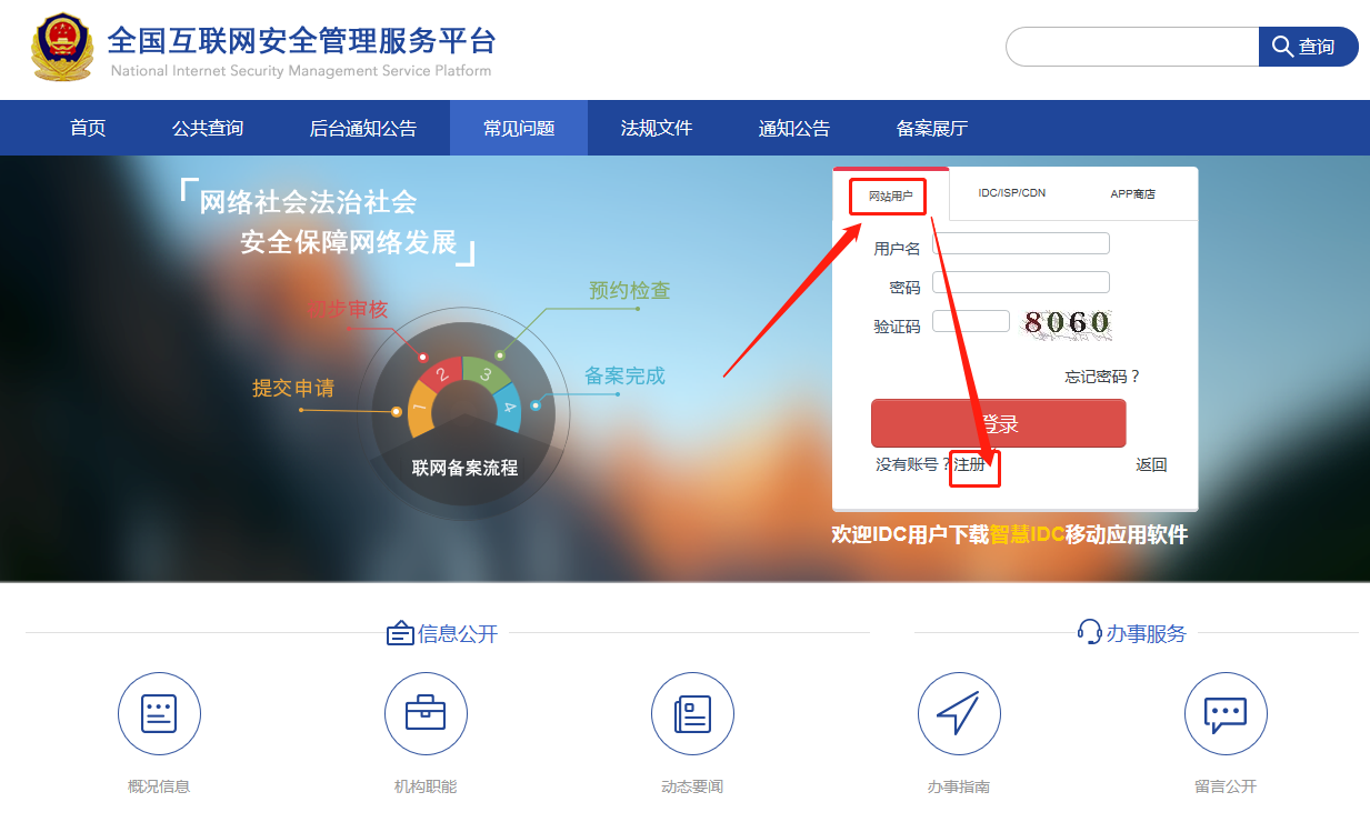 登陸beian.gov.cn 注冊(cè)用戶名和密碼,一般企業(yè)網(wǎng)站選擇 > 網(wǎng)站用戶 > 注冊(cè)