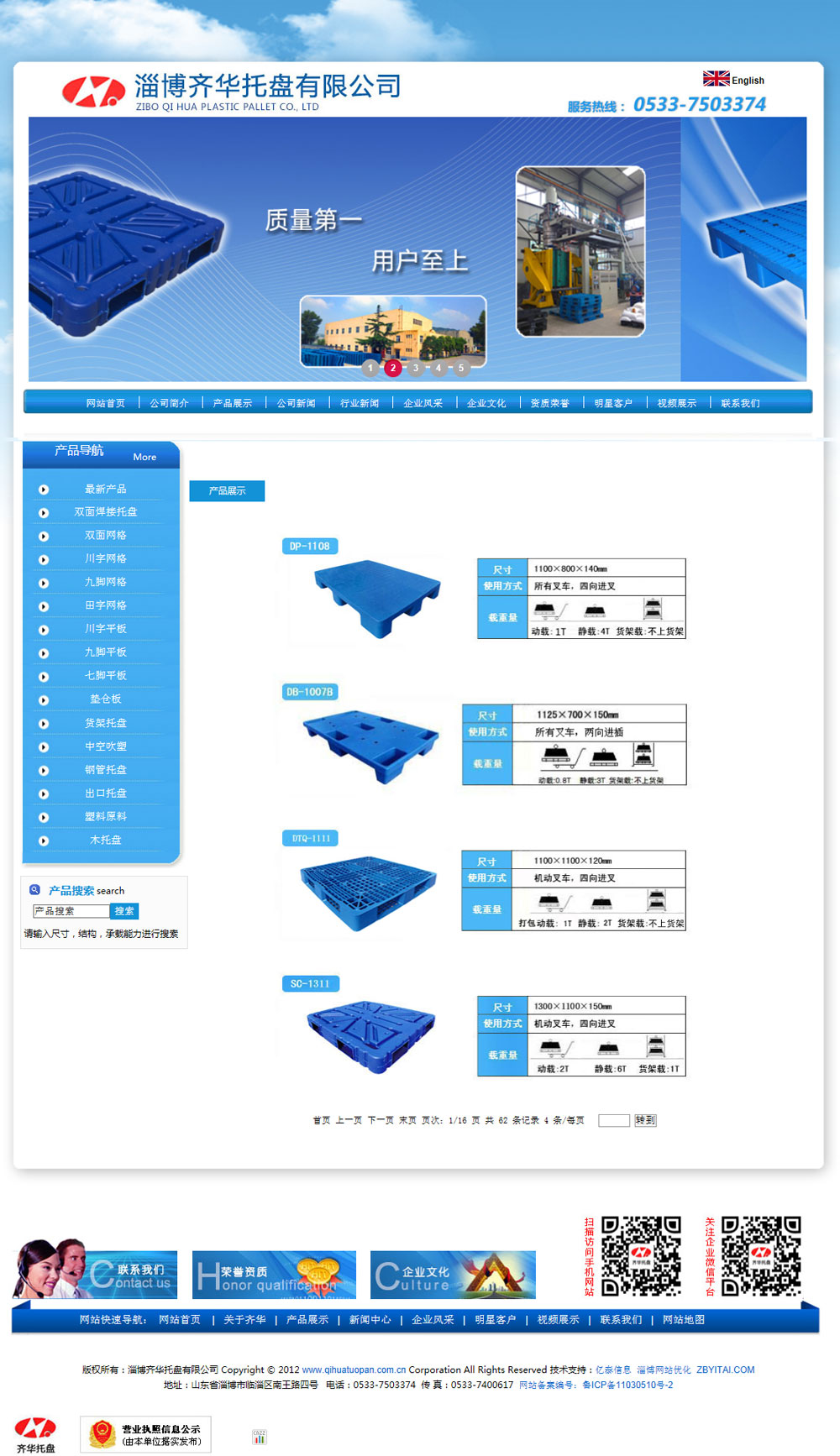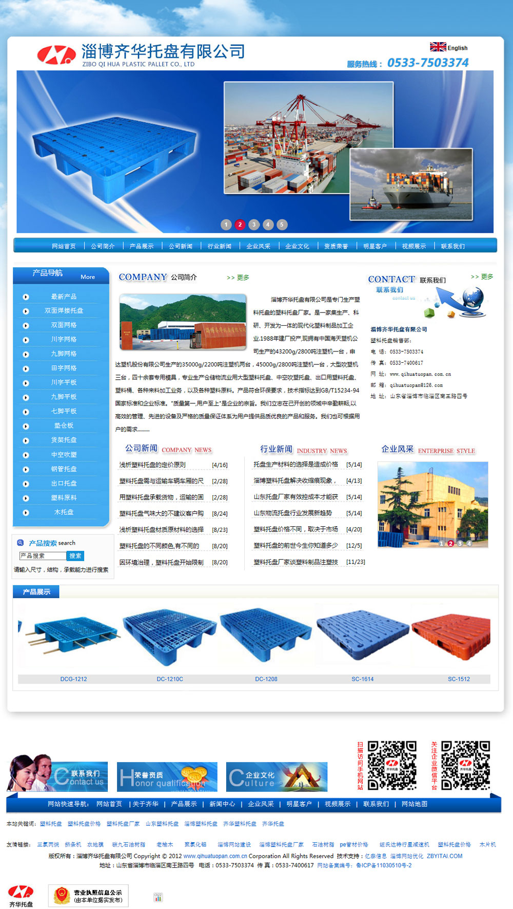 淄博齊華托盤(pán)有限公司是專門(mén)生產(chǎn)塑料托盤(pán)的塑料托盤(pán)廠家。是一家集生產(chǎn)、科研、開(kāi)發(fā)為一體的現(xiàn)代化塑料制品加工企業(yè).1988年建廠投產(chǎn),現(xiàn)擁有中國(guó)海天塑機(jī)公司生產(chǎn)的43200g/2800噸注塑機(jī)一臺(tái),申達(dá)塑機(jī)股份有限公司生產(chǎn)的35000g/2200噸注塑機(jī)兩臺(tái),45000g/2800噸注塑機(jī)一臺(tái),大型吹塑機(jī)三臺(tái),四十余套專用模具,專業(yè)生產(chǎn)倉(cāng)儲(chǔ)物流業(yè)用大型塑料托盤(pán)、中空吹塑托盤(pán)、出口用塑料托盤(pán)、塑料桶、各種來(lái)料加工業(yè)務(wù),以及各種塑料原料。產(chǎn)品符合環(huán)保要求,技術(shù)指標(biāo)達(dá)到GB/T15234-94國(guó)家標(biāo)準(zhǔn)和企業(yè)標(biāo)準(zhǔn)。"質(zhì)量第一,用戶至上"是企業(yè)的宗旨。我們立志在己開(kāi)創(chuàng)的領(lǐng)域中辛勤耕耘,以高效的管理、先進(jìn)的設(shè)備及嚴(yán)格的質(zhì)量保證體系為用戶提供品質(zhì)優(yōu)良的產(chǎn)品和服務(wù)。我們也可根據(jù)用戶的需求,改良現(xiàn)有產(chǎn)品,開(kāi)發(fā)新產(chǎn)品,與用戶建立長(zhǎng)期發(fā)展的合作關(guān)系。