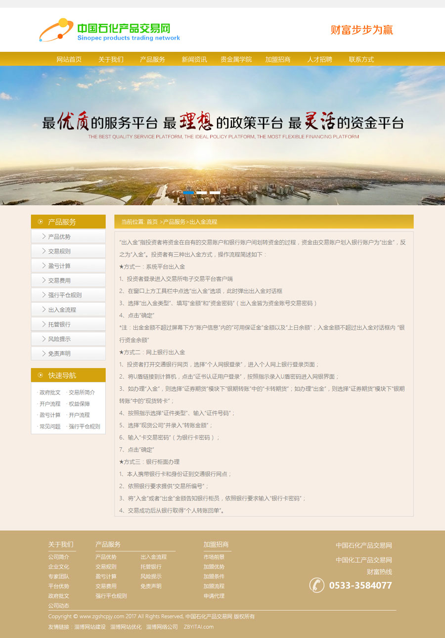 中國化工產(chǎn)品交易網(wǎng),交易中心戰(zhàn)略定位是以服務(wù)石化行業(yè)實體產(chǎn)業(yè)鏈為基本定位,遵循公開、公平、公正原則,通過提供以服務(wù)集成化為特色,全面整合第三方資源的集成服務(wù)方案,為產(chǎn)業(yè)鏈客戶提升運營效率,實現(xiàn)多方共贏,將交易中心建設(shè)成為一個具有核心競爭能力和較強營運能力的第三方電子商務(wù)服務(wù)平臺。
