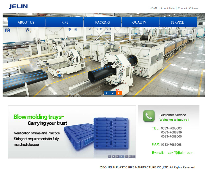 Jielin has an excellent technical and management team, and utilizes the world’s most advanced equipment and the best raw materials to produce gas or hot/cold-water plastic pipes and fittings that are suitable for municipal and construction areas, and liquid-packaged composite intermediate bulk containers ,FFS heavy packaging film,bags for heavy packaging indusyry . In the meantime, we develop innovative products with rigorous attitude and strict strandard, proactively participate in establishing national standard and occupation standard, pushing the industry moving forward. Our company has introduced world-class production devices and facilities such as the Battenfeld-Cincinnati and Krauss Maffei pipe extrusion lines, Kautex large-capacity blow molding line, Hosokawa-alpine and Windmoller & Holscher plastic film blow molding line. The raw materials used by our company are the quality products made by world famous companies such as Borealis, Basel, Total, Daelim, SABIC, SK, DOW and Exxon Mobil. We own more than ten national patents, we are one of the drafting units for national standard. Our inspection center has gained the approval of CNAS. We have obtained the following certifications :Manufacture License of Special Equipment People’s Republic of China (Press Piping Component), Health of Department of Shandong Province Safety in Health Drinking Water Hygiene Products Hygiene License, We have been found to conform to the standard of ISO 9001:2008 Quality Management System Certificate, ISO 14001:2004 Environmental Management System Certificate, OHSAS 18001-2007 Occupation Health and Safety Management Certificate, National Environment Mark Production Certification, Water-saving Product Certification, etc. In the meantime, we strengthen the process of IQC, IPQC, FQC, OQC quality control, and estabilsh a perfect integral quality management system. We strive for supplying perfect products and service for clients, hold responsibility for employees growth, and aim to create value for society. We take the responsibility to achieve close cooperation with clients, suppliers and concerned beneficial parties, to achieve mutual progresses, and to create future together.