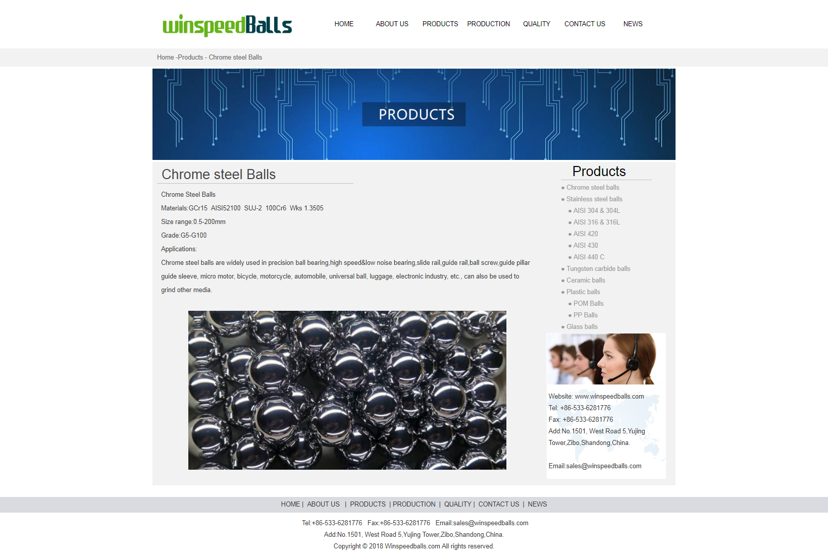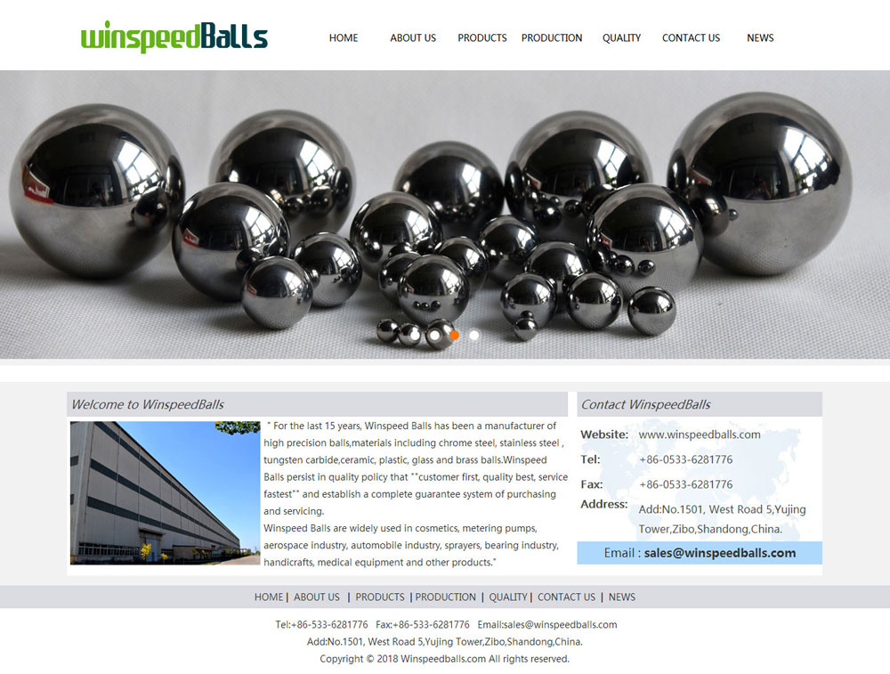 Winspeed Balls has been a manufacturer of high precision balls,materials including chrome steel, stainless steel , tungsten carbide,ceramic, plastic, glass and brass balls for the last 15 years Winspeed Balls persist in quality policy that ""customer first, quality best, service fastest"" and establish a complete guarantee system of purchasing and servicing. Winspeed Balls are widely used in cosmetics, metering pumps, aerospace industry, automobile industry, sprayers, bearing industry, handicrafts, medical equipment and other products." 網(wǎng)址: http://www.winspeedballs.com