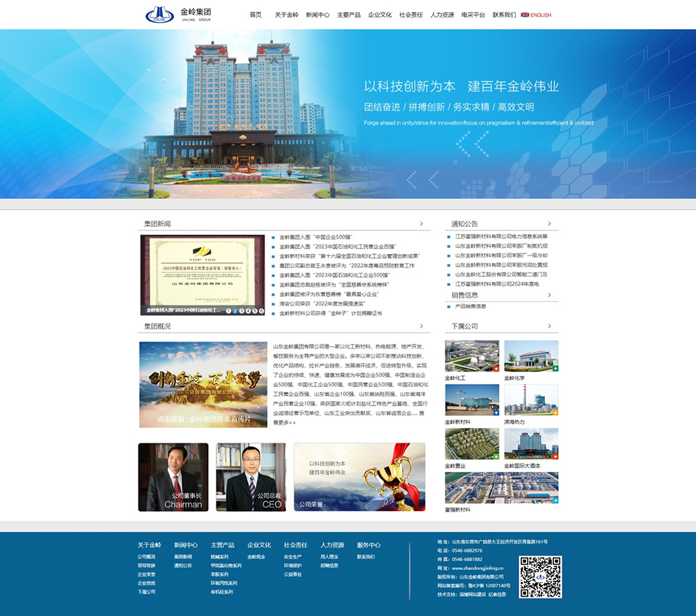 山東金嶺集團(tuán)有限公司是一家以化工新材料、熱電能源、地產(chǎn)開發(fā)、餐飲服務(wù)為主導(dǎo)產(chǎn)業(yè)的大型企業(yè)。多年以來,公司不斷推動科技創(chuàng)新,優(yōu)化產(chǎn)品結(jié)構(gòu),拉長產(chǎn)業(yè)鏈條,發(fā)展循環(huán)經(jīng)濟(jì),促進(jìn)轉(zhuǎn)型升級,實(shí)現(xiàn)了企業(yè)的持續(xù)、快速、健康發(fā)展,成為中國企業(yè)500強(qiáng)、中國制造業(yè)企業(yè)500強(qiáng)、中國化工企業(yè)500強(qiáng)、中國民營企業(yè)500強(qiáng)、中國石油和化工民營企業(yè)百強(qiáng)、山東省企業(yè)100強(qiáng)、山東省納稅百強(qiáng)、山東省海洋產(chǎn)業(yè)民營企業(yè)10強(qiáng),榮獲國家火炬計劃鹽化工特色產(chǎn)業(yè)基地、全國行業(yè)誠信經(jīng)營示范單位、山東工業(yè)突出貢獻(xiàn)獎、山東省誠信企業(yè)、山東省生態(tài)文明與循環(huán)經(jīng)濟(jì)新技術(shù)十佳典范企業(yè)、山東省質(zhì)量競爭力百強(qiáng)企業(yè)、首屆東營市功勛企業(yè)等多項(xiàng)榮譽(yù)稱號。 今后公司將搶抓經(jīng)濟(jì)發(fā)展新常態(tài)帶來的機(jī)遇,立足海洋產(chǎn)業(yè)領(lǐng)域,集中產(chǎn)業(yè)優(yōu)勢,促進(jìn)產(chǎn)業(yè)結(jié)構(gòu)調(diào)整和優(yōu)化升級,堅持科學(xué)發(fā)展、創(chuàng)新發(fā)展、綠色發(fā)展,樹立新理念,構(gòu)建新格局,創(chuàng)造新作為,推動企業(yè)持續(xù)快速高質(zhì)量發(fā)展。 公司董事長趙曰嶺愿以誠信和雙贏的理念,與國內(nèi)外各界朋友精誠合作,共創(chuàng)輝煌。