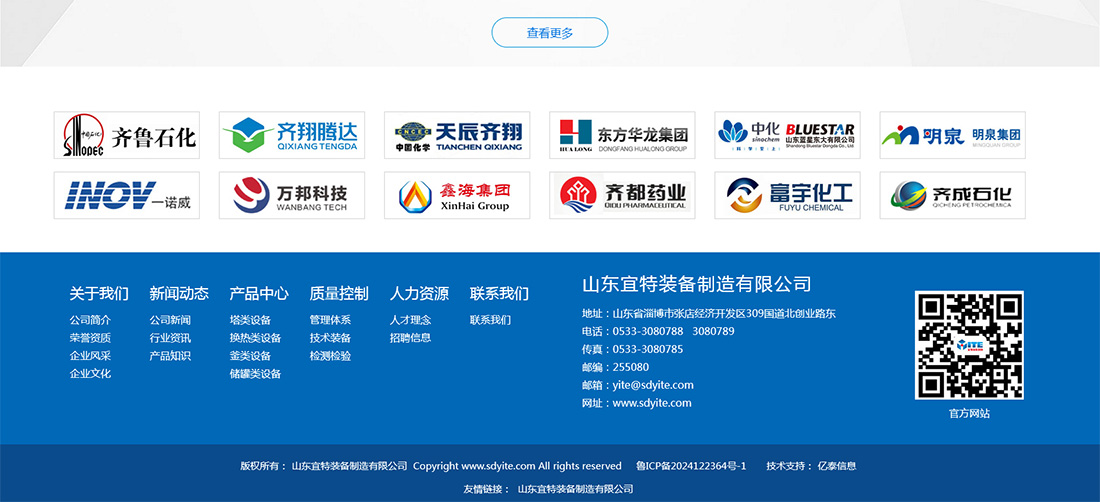 公司質(zhì)保體系健全,各專(zhuān)業(yè)中、高級(jí)工程師二十余人,體系運(yùn)行程序清晰、職責(zé)明確、管理規(guī)范,各崗位相互配合、履職盡責(zé),保障產(chǎn)品質(zhì)量。 公司承接石油化工、鹽化工、煤化工、醫(yī)藥等化工行業(yè)成套壓力容器制造;礦山機(jī)械、環(huán)保設(shè)備、風(fēng)電設(shè)備、各種低溫氣體成套設(shè)備制造等,產(chǎn)品涵蓋塔器、換熱器、反應(yīng)釜、儲(chǔ)罐等各類(lèi)產(chǎn)品,連續(xù)三年銷(xiāo)售額在2億元以上。 公司堅(jiān)持“崇尚品質(zhì)、履約雙贏”的經(jīng)營(yíng)理念,與客戶(hù)共同發(fā)展的追求,以過(guò)硬的產(chǎn)品質(zhì)量和優(yōu)質(zhì)的售后服務(wù)與省內(nèi)外多家國(guó)有企業(yè)、上市公司、大型民營(yíng)企業(yè)建立了長(zhǎng)期穩(wěn)固的合作關(guān)系,被多家大型企業(yè)授予“質(zhì)量信得過(guò)單位”、“優(yōu)秀供應(yīng)商”稱(chēng)號(hào)。 山東宜特裝備制造有限公司 網(wǎng)址:www.sdyite.com