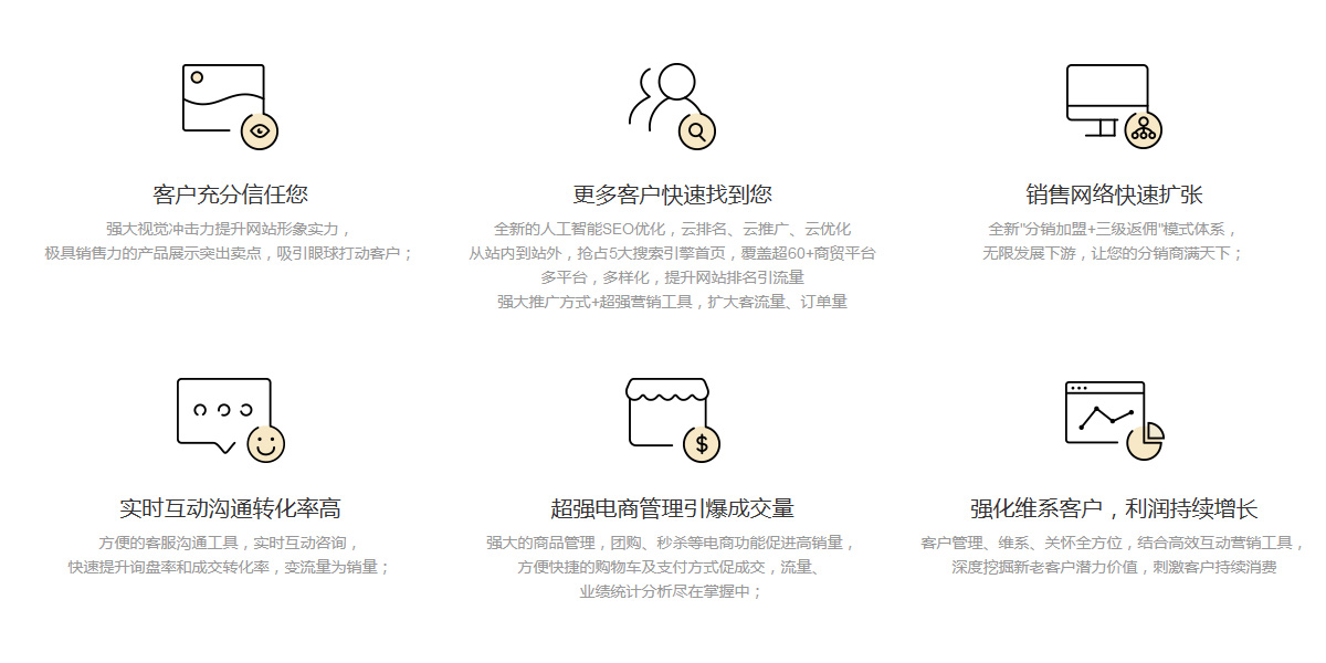 基于云架構(gòu)和搜索引擎技術(shù)為支撐的新一代內(nèi)容管理系統(tǒng)(CMS)整合企業(yè)網(wǎng)站、手機網(wǎng)站、微信營銷、搜索引擎優(yōu)化、行網(wǎng)平臺、數(shù)據(jù)統(tǒng)計的一站式服務(wù)平臺。讓企業(yè)快速、高效的展示在廣大客戶面前,為企業(yè)帶來更多潛在客戶,提升企業(yè)曝光率和品牌影響力。